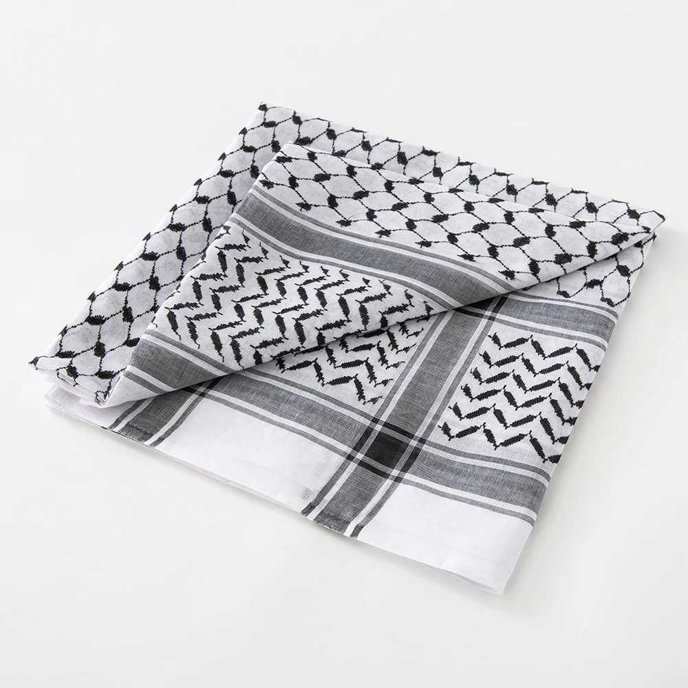 Traditional Arafat Kuffiyeh Palestinian Black and White Arab Kafiya Shemagh Keffiyeh Middle Eastern Scarf Wrap Jacquard Headwrap